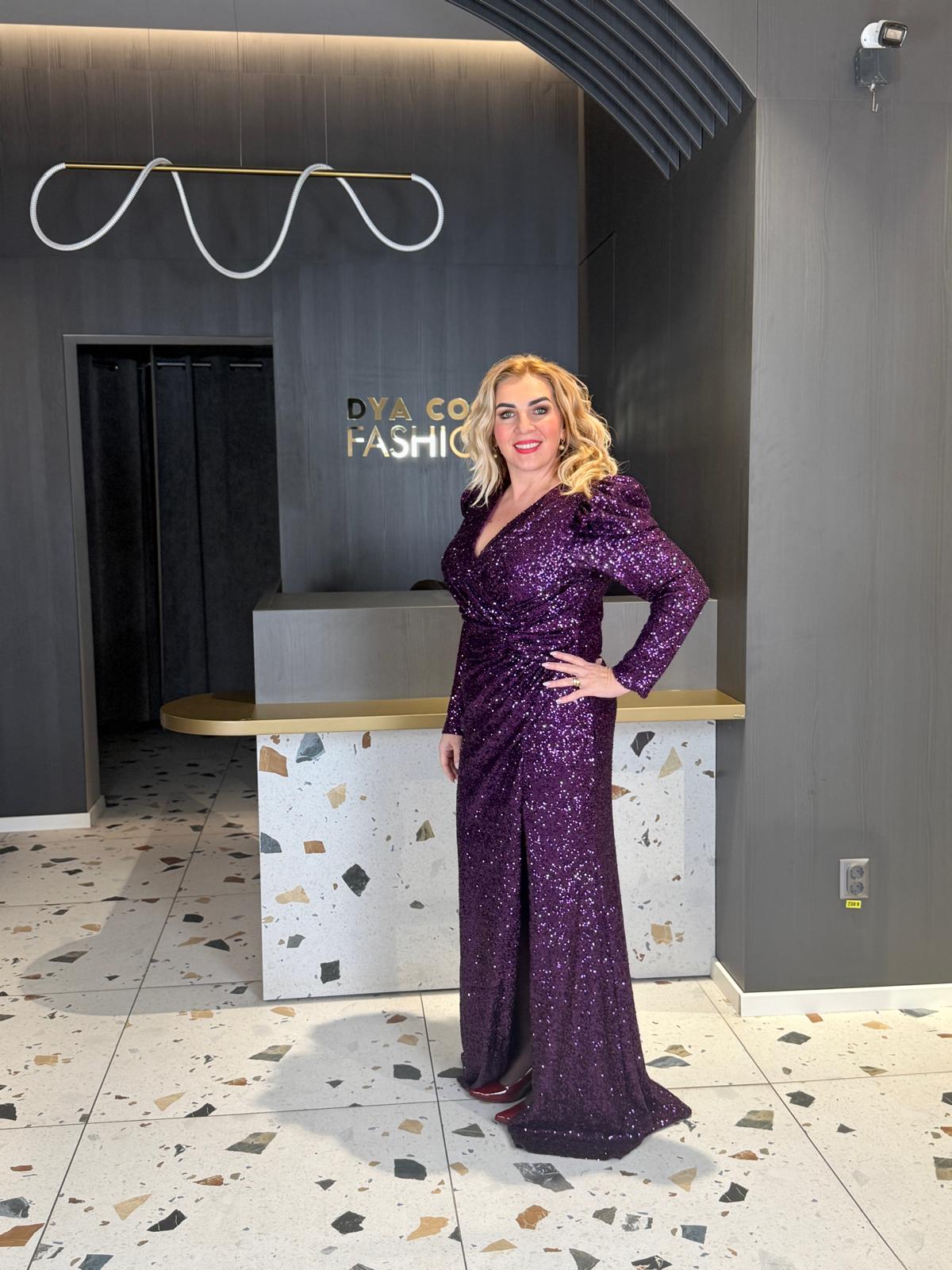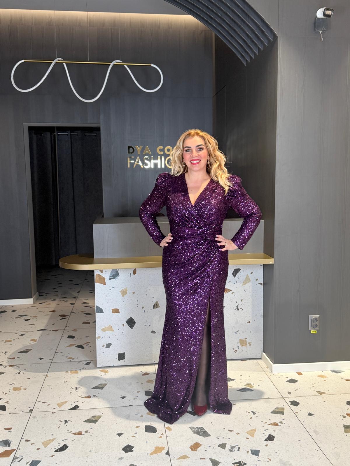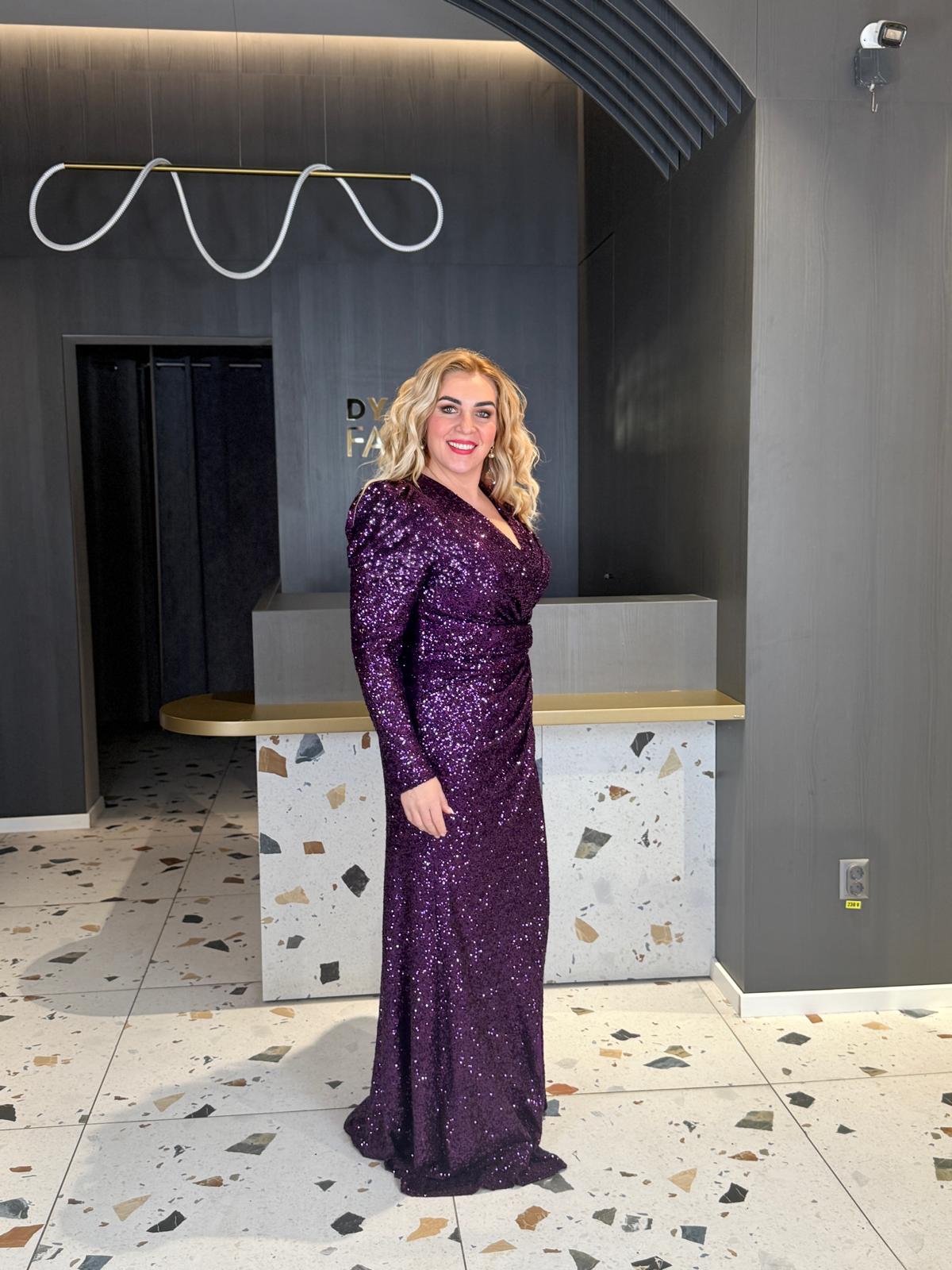 Rochie Lungă Mov Cu Paiete Eleganta De Seară DYA1495