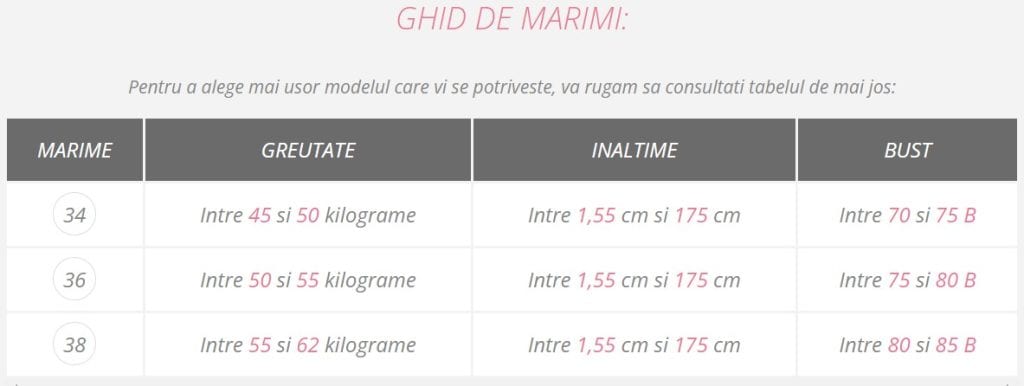 Recomandam ca atunci cand plasati o comanda sa aveti la indemana masuratorile dvs. (Bust , Talie, Sold, Umeri).