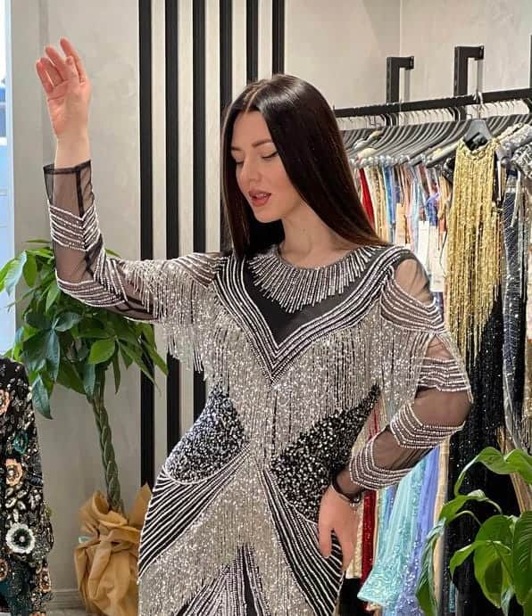 Model lung, broderie cu margele argintii efectuată manual. Material ușor elastic .